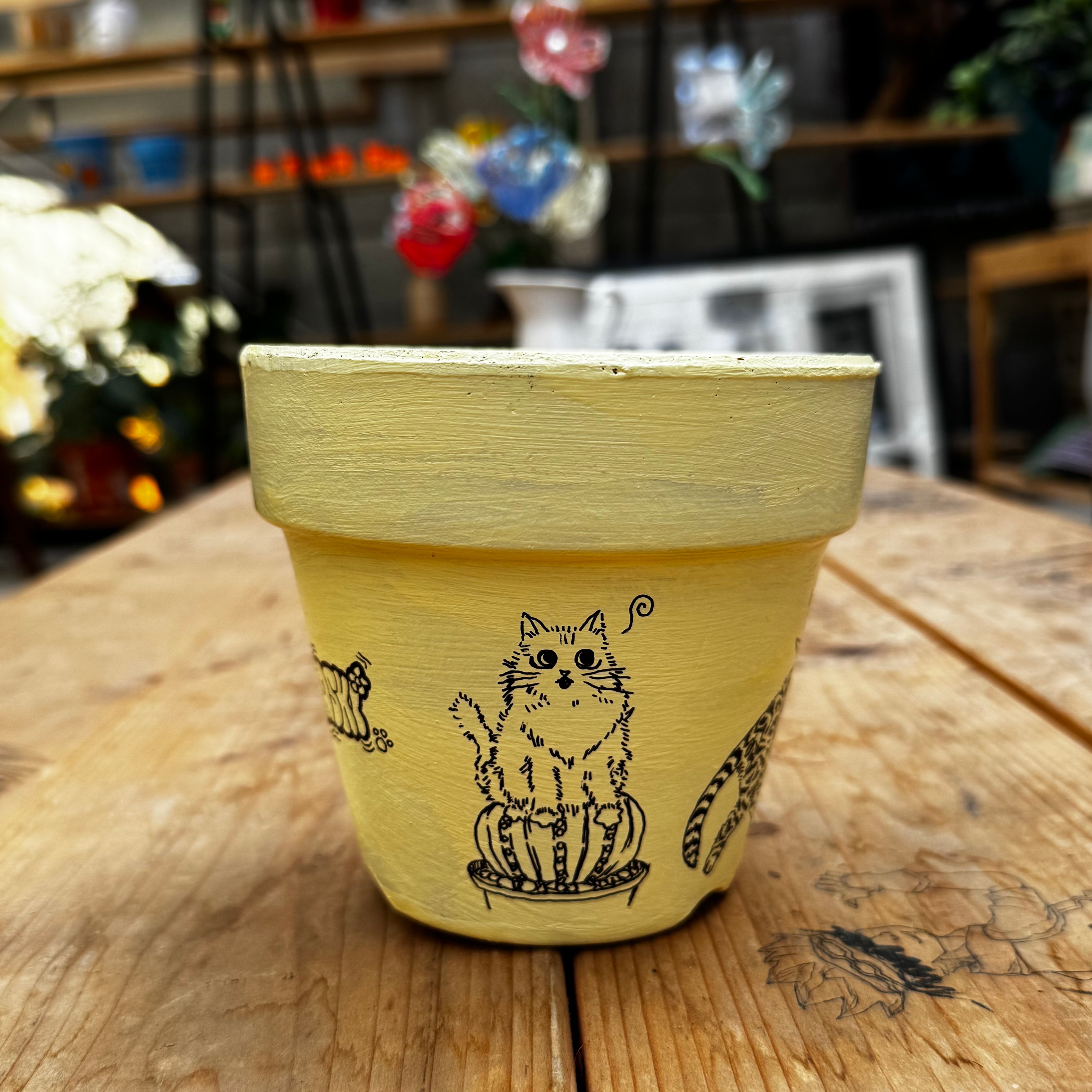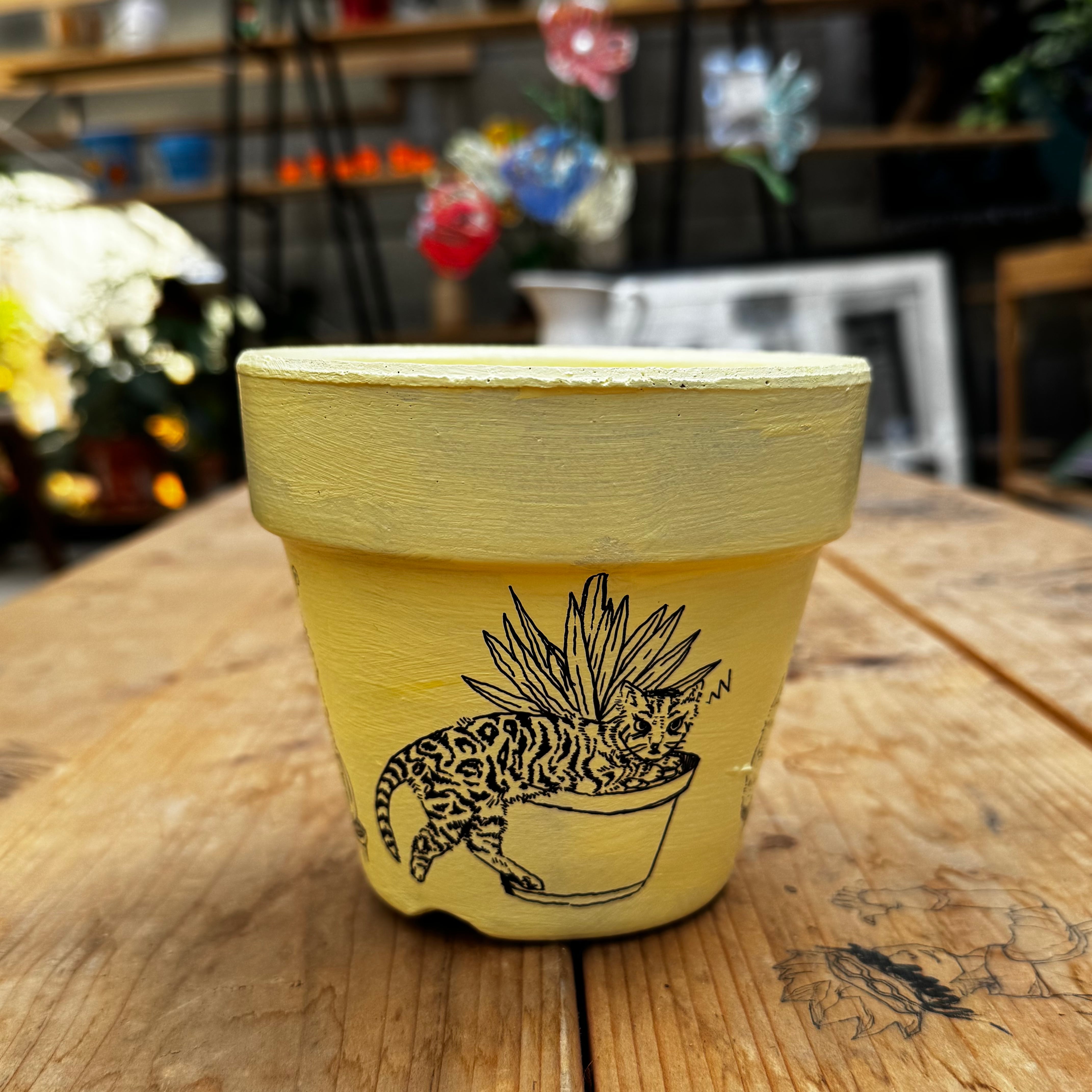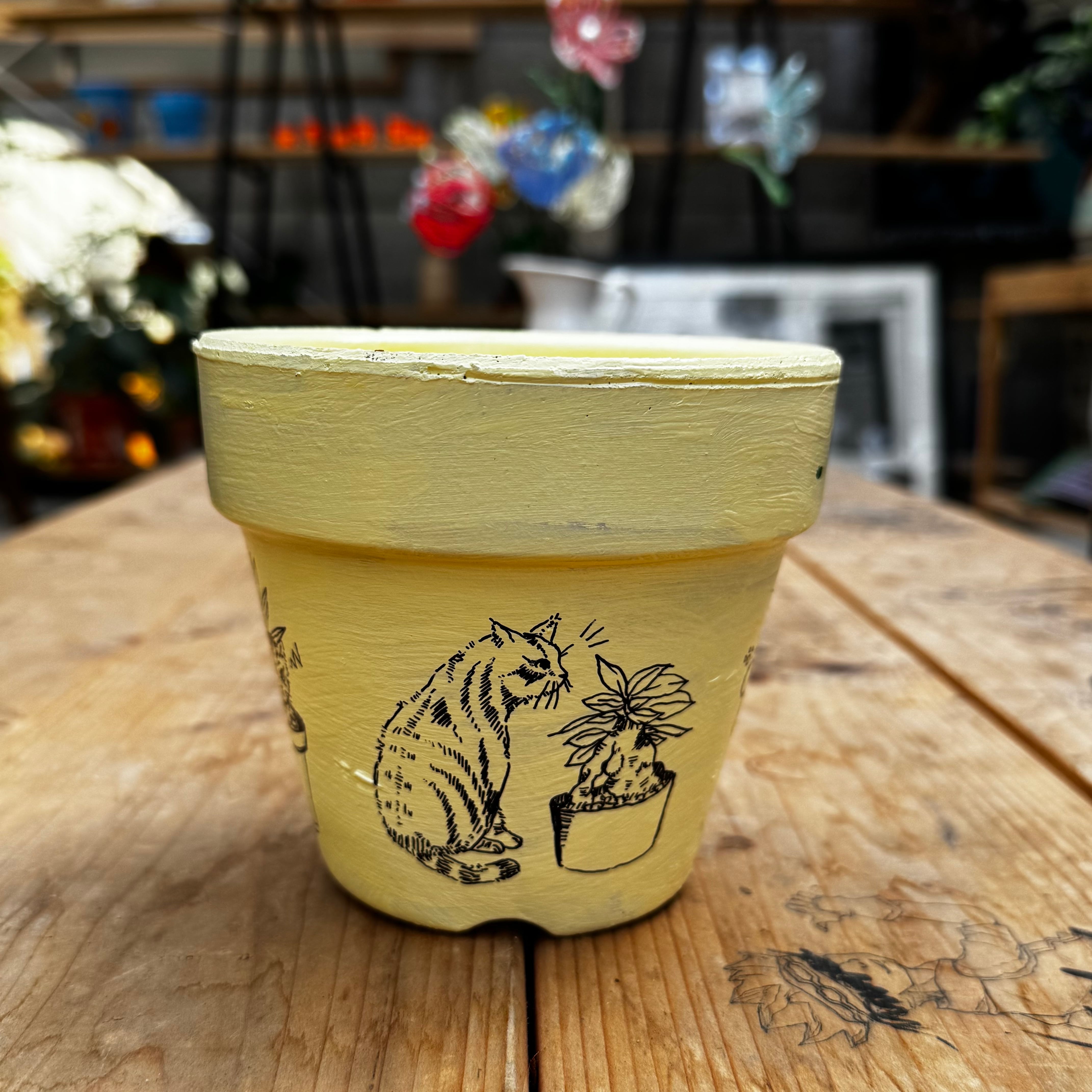 高橋園芸オリジナルロゴとポップなイラストを手作業でペイントした完全一点物の鉢。