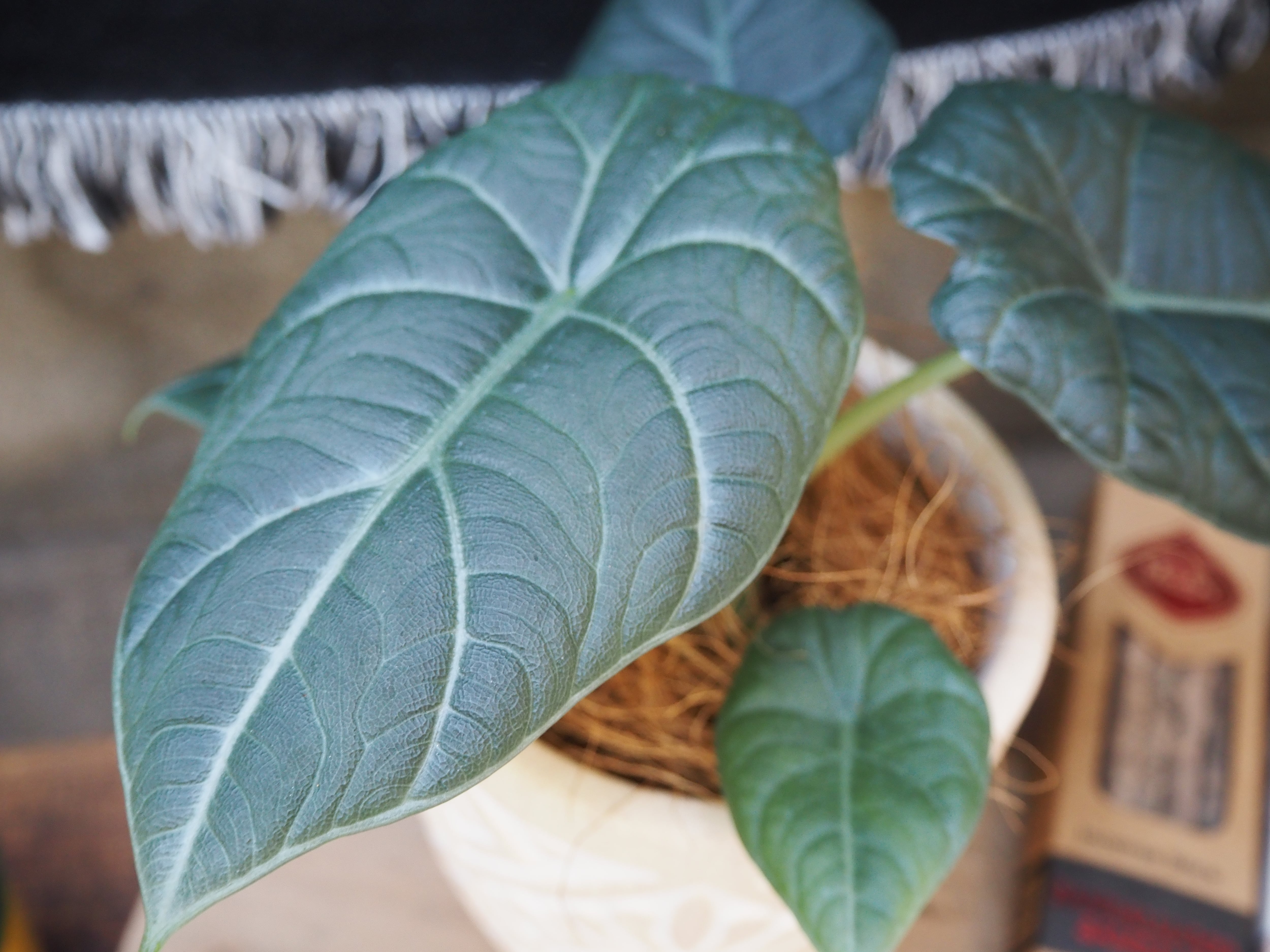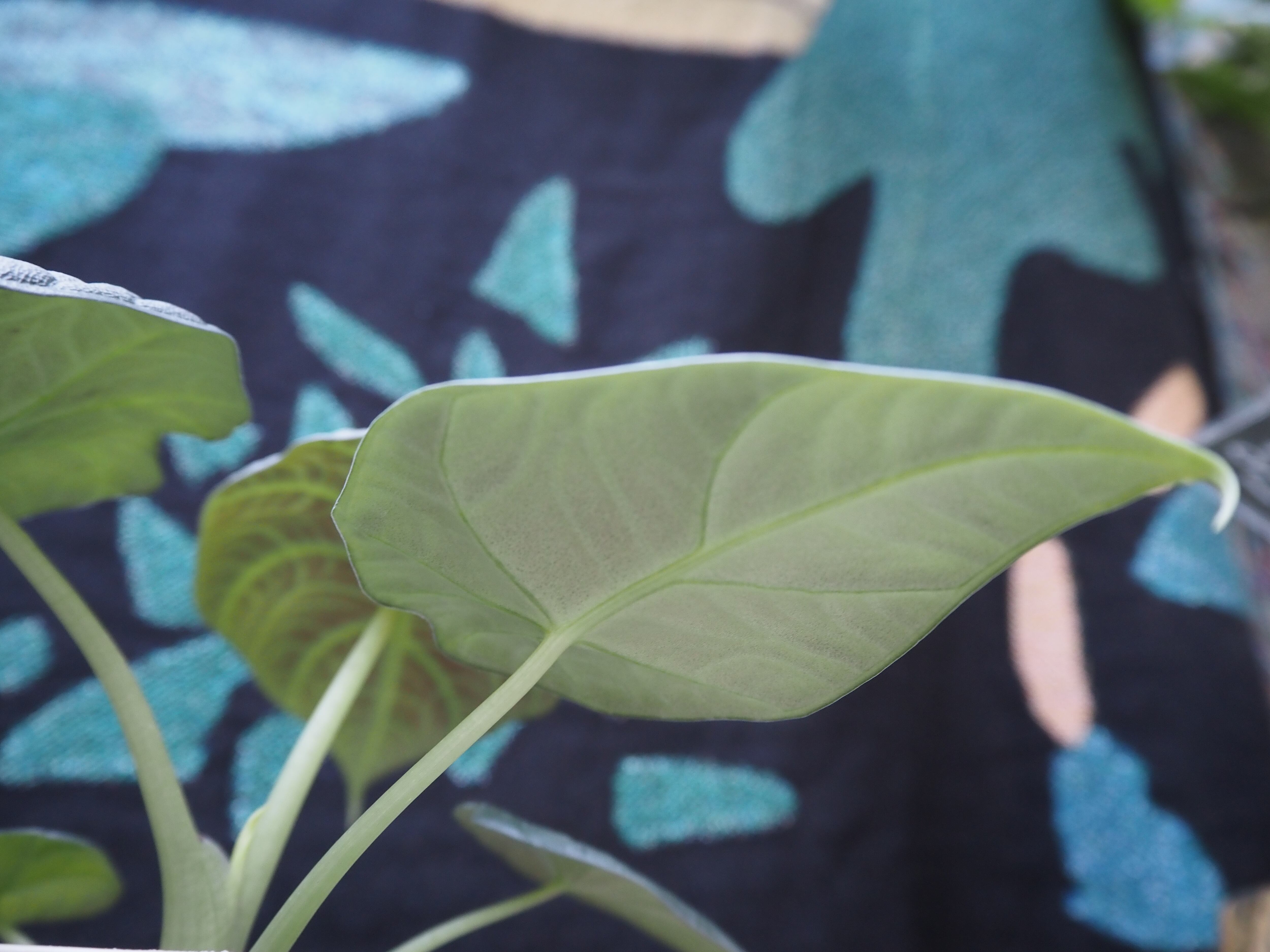 アロカシア マハラニーです!少しグレーっぽい色味がオシャレなアロカシアです!葉っぱはメロに似ていますがメロの様な硬さはなく、色も薄めです!