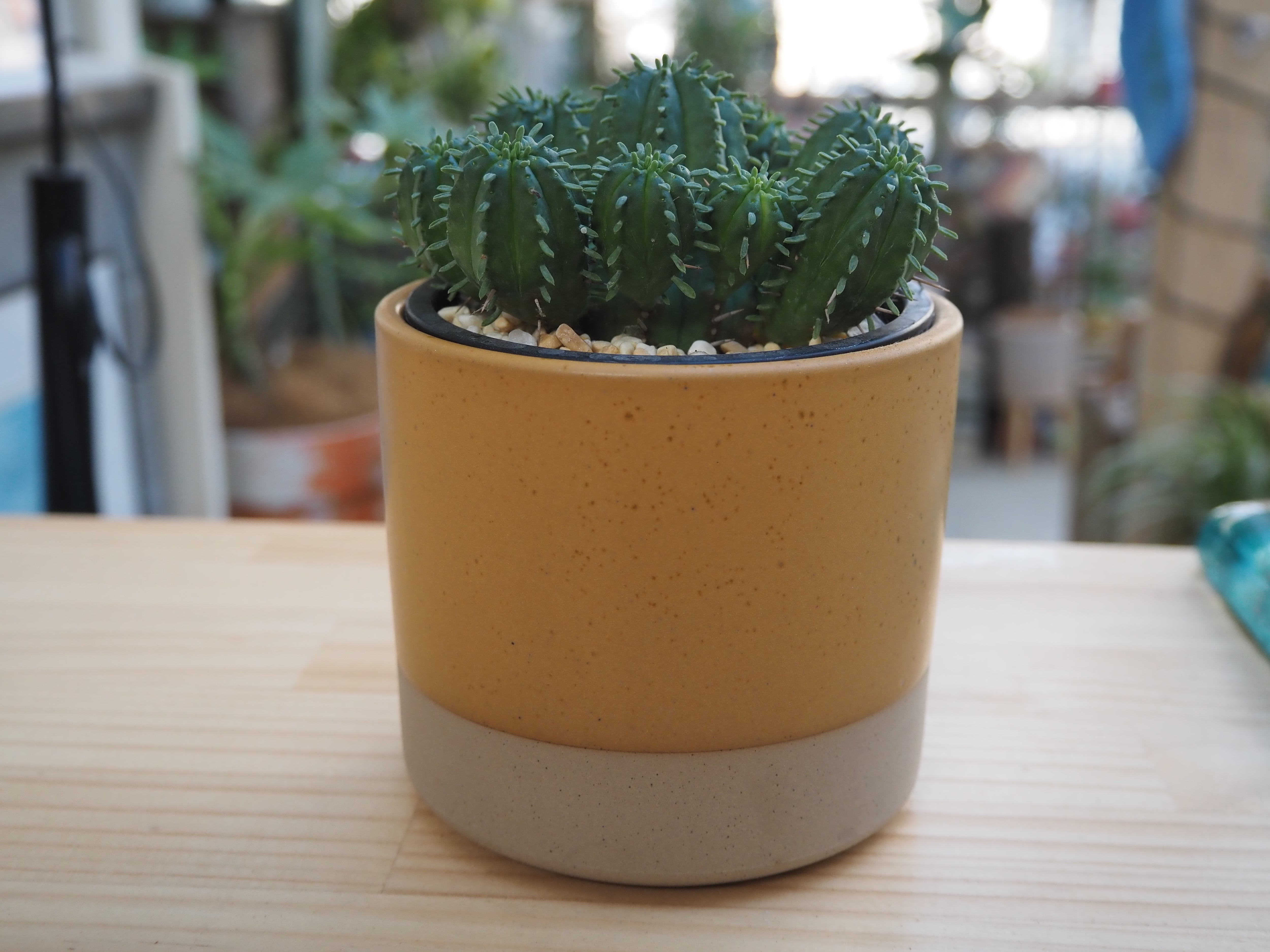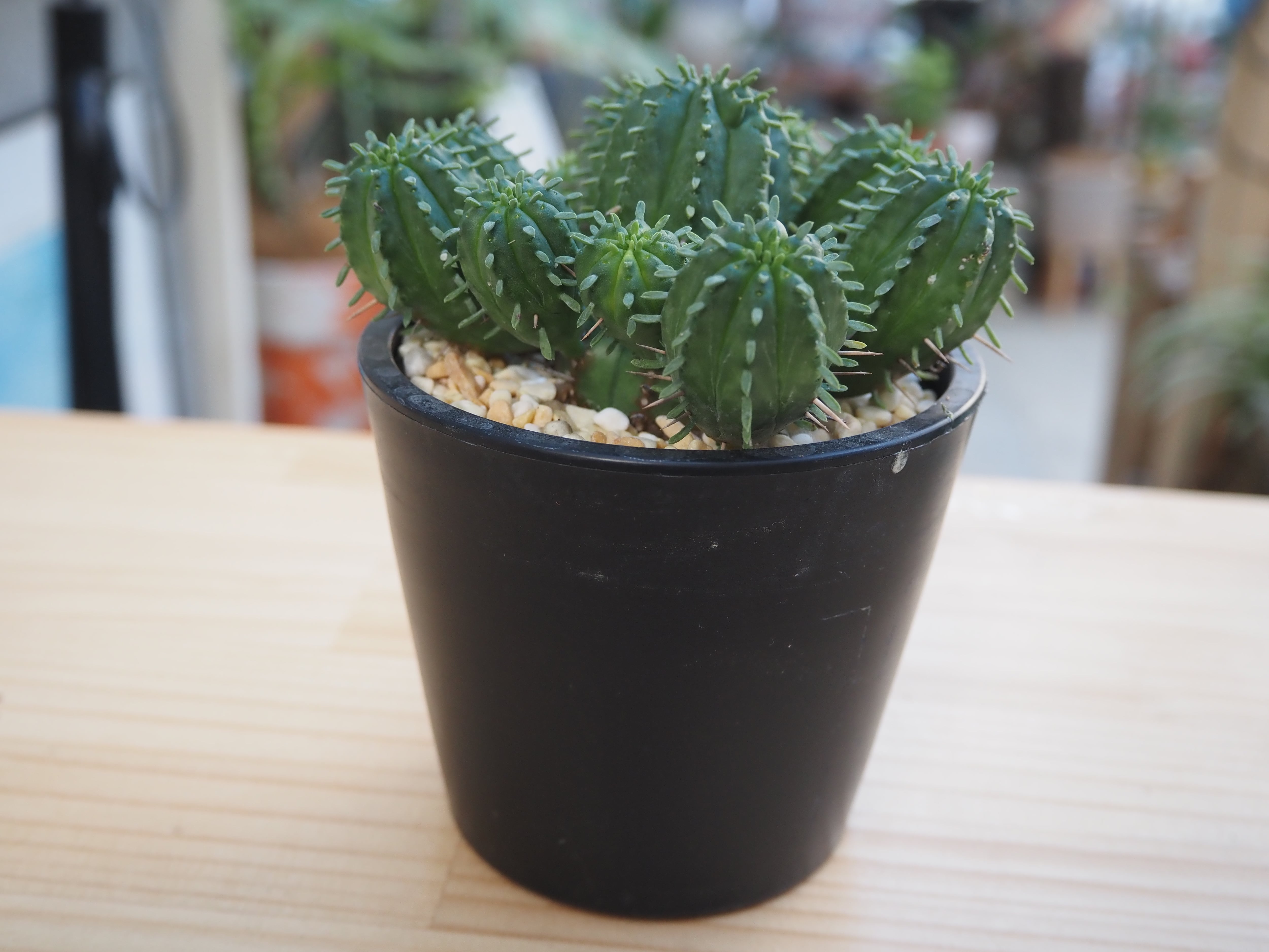 ユーフォルビア マミラリスです!南アフリカ原産の植物で、日本では「鱗宝(りんぽう)」という和名で知られています!サボテンに見えてサボテンではないです!