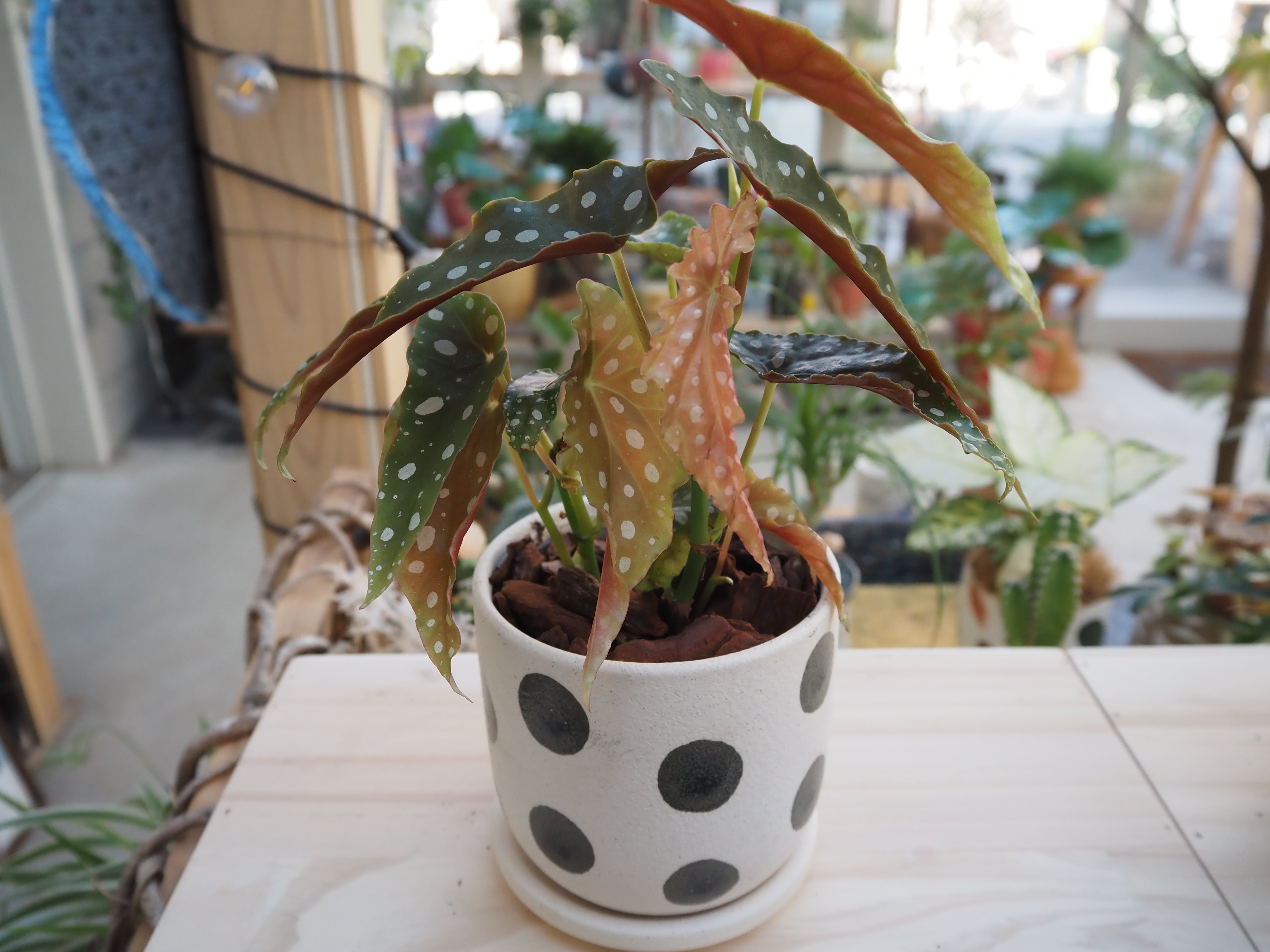 葉っぱに筆で描いたような斑点が入っているのが特徴的です。とても育てやすいので、初心者におすすめの植物です!寒さだけ注意して下さい(10℃以上)