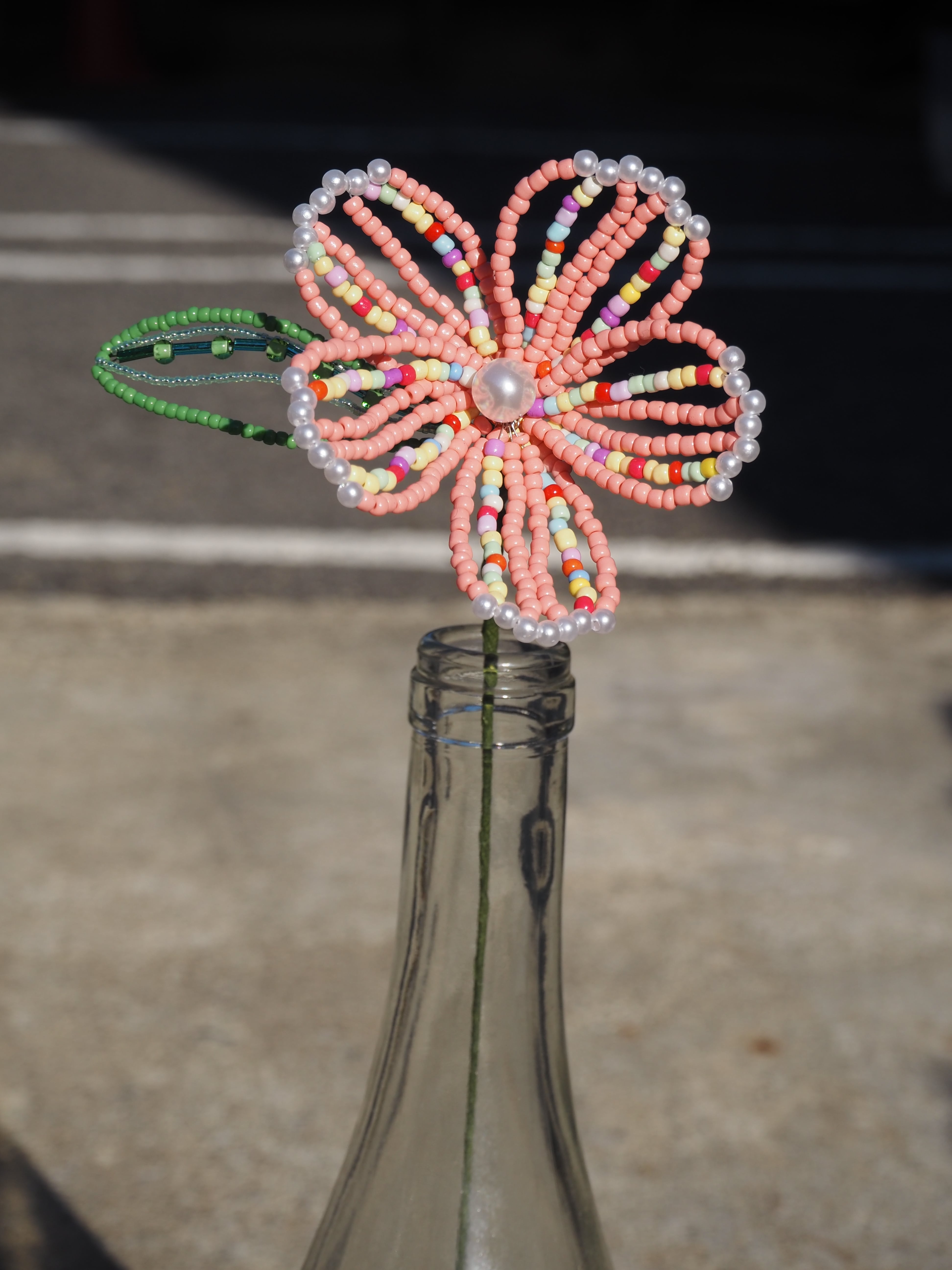ビーズフラワー [葉っぱ付]
