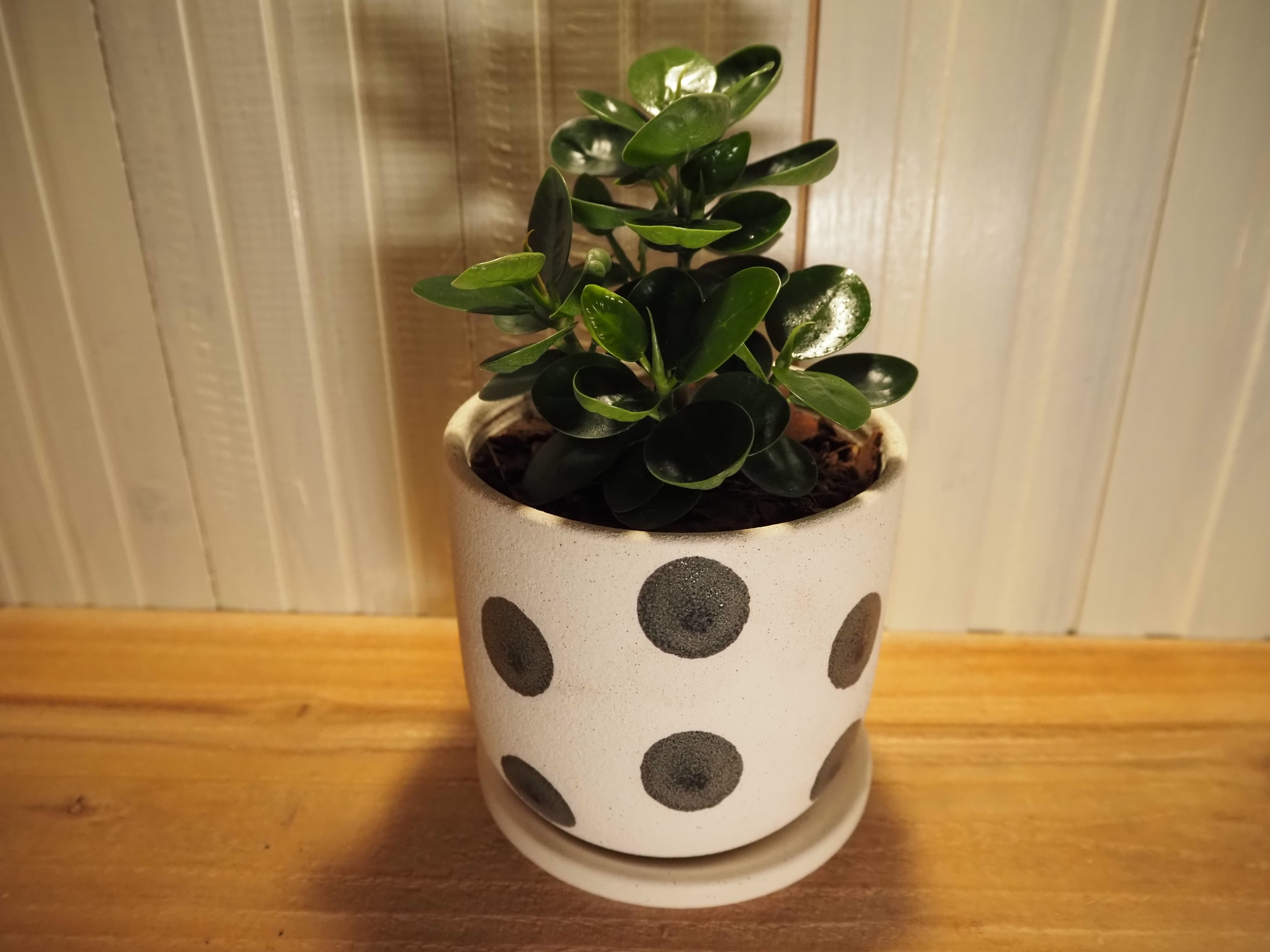水玉鉢の雰囲気とパンダガジュマルの葉っぱの形がマッチしていてとても可愛く仕上がっています。