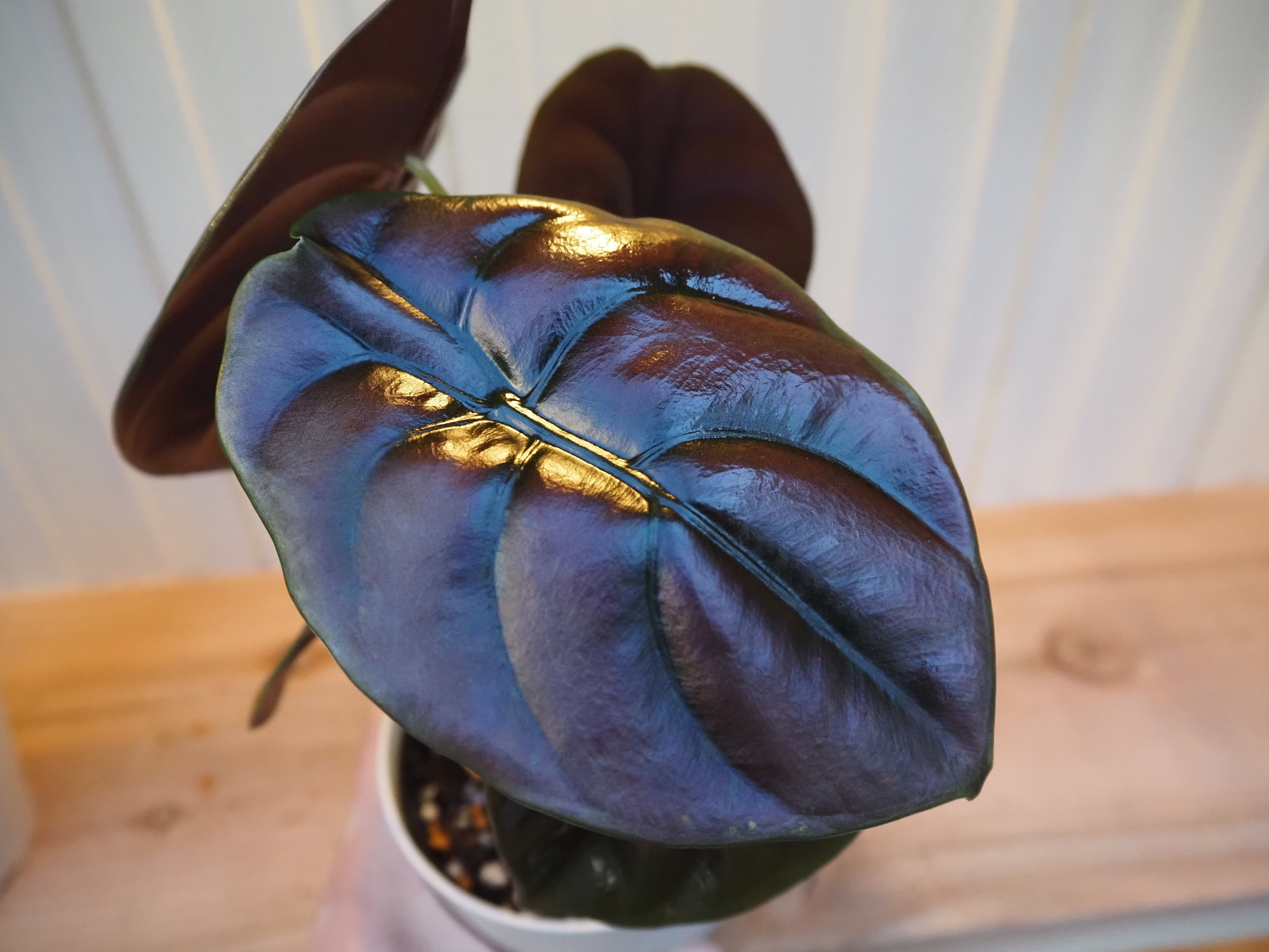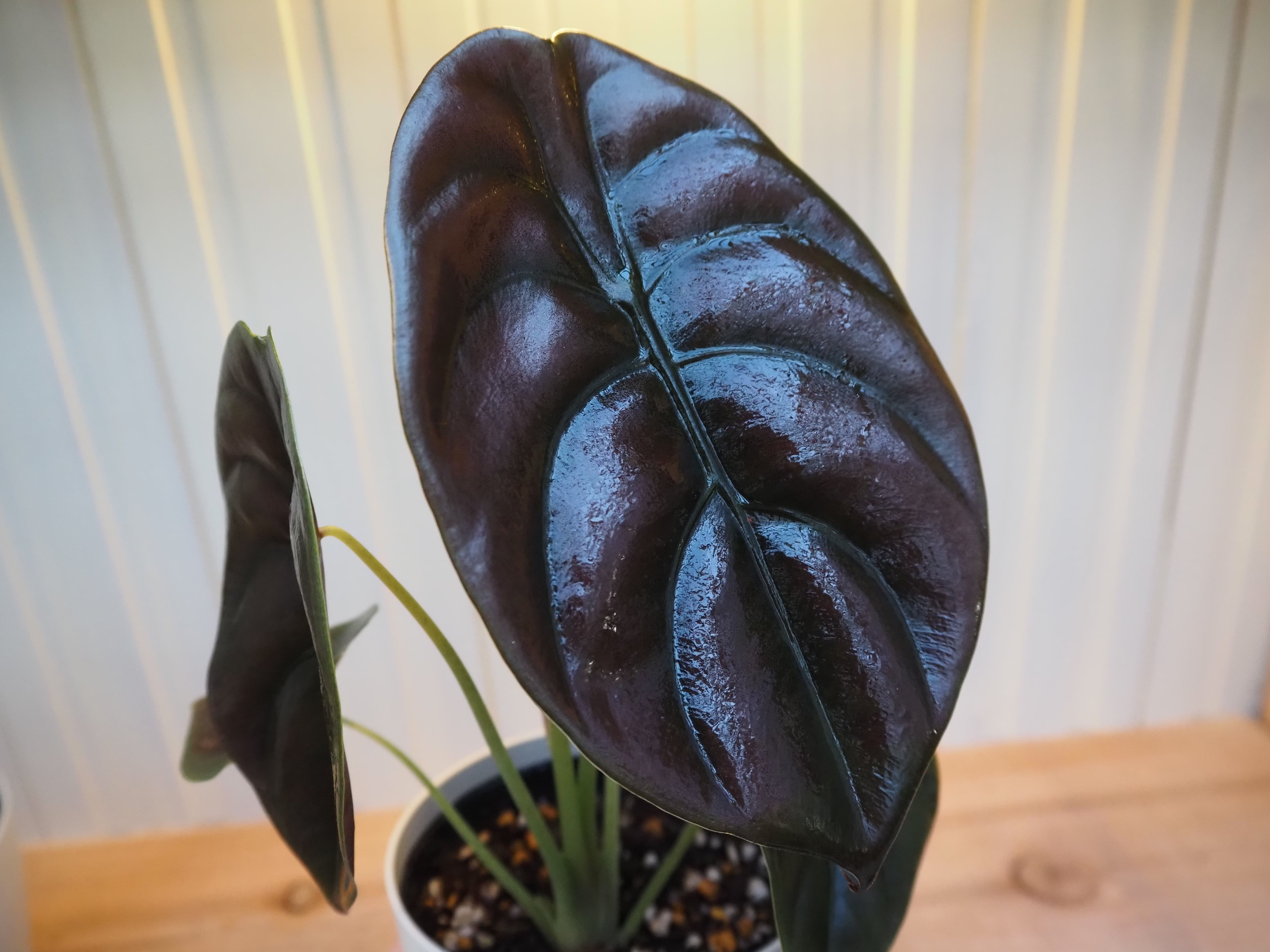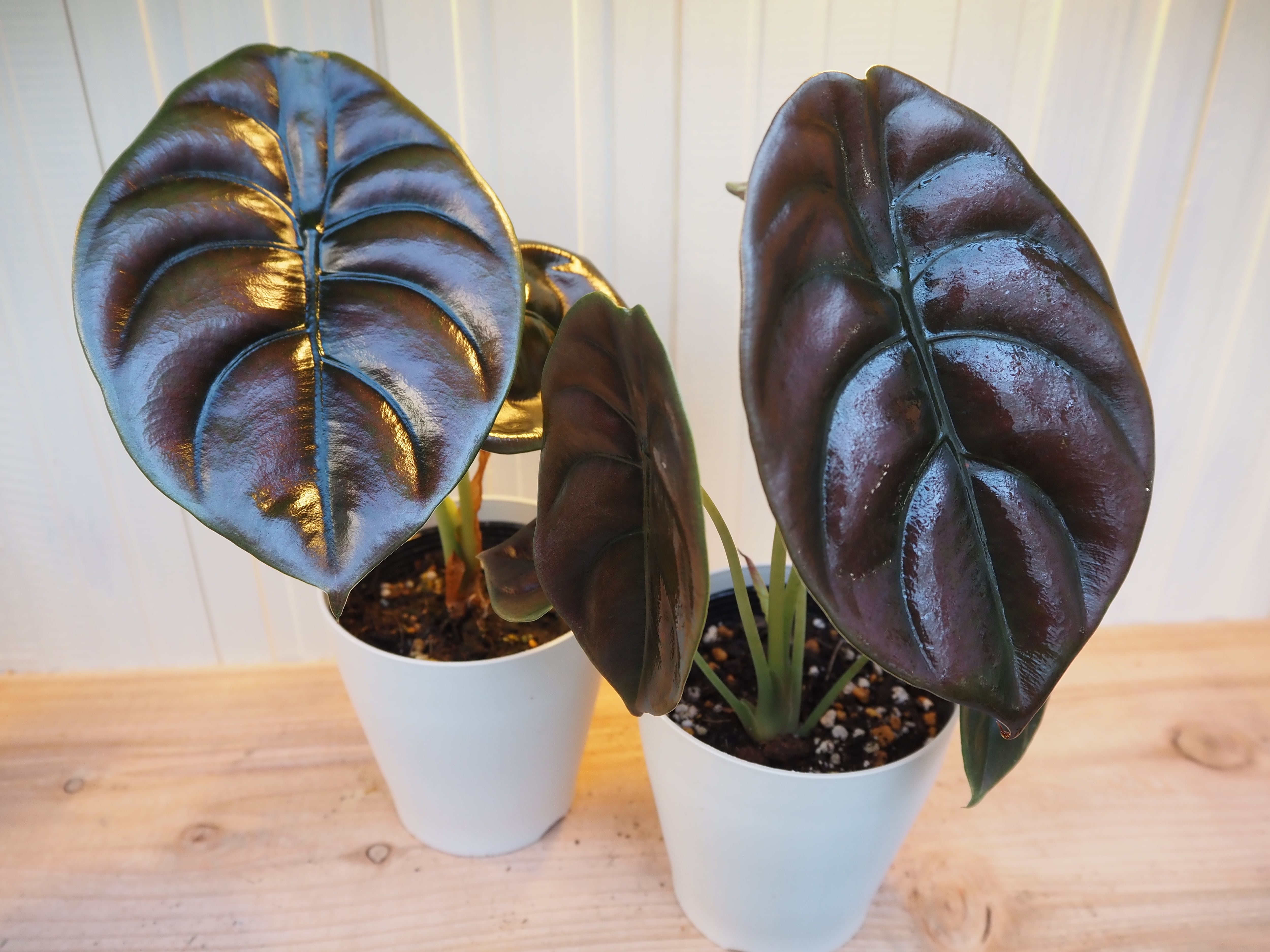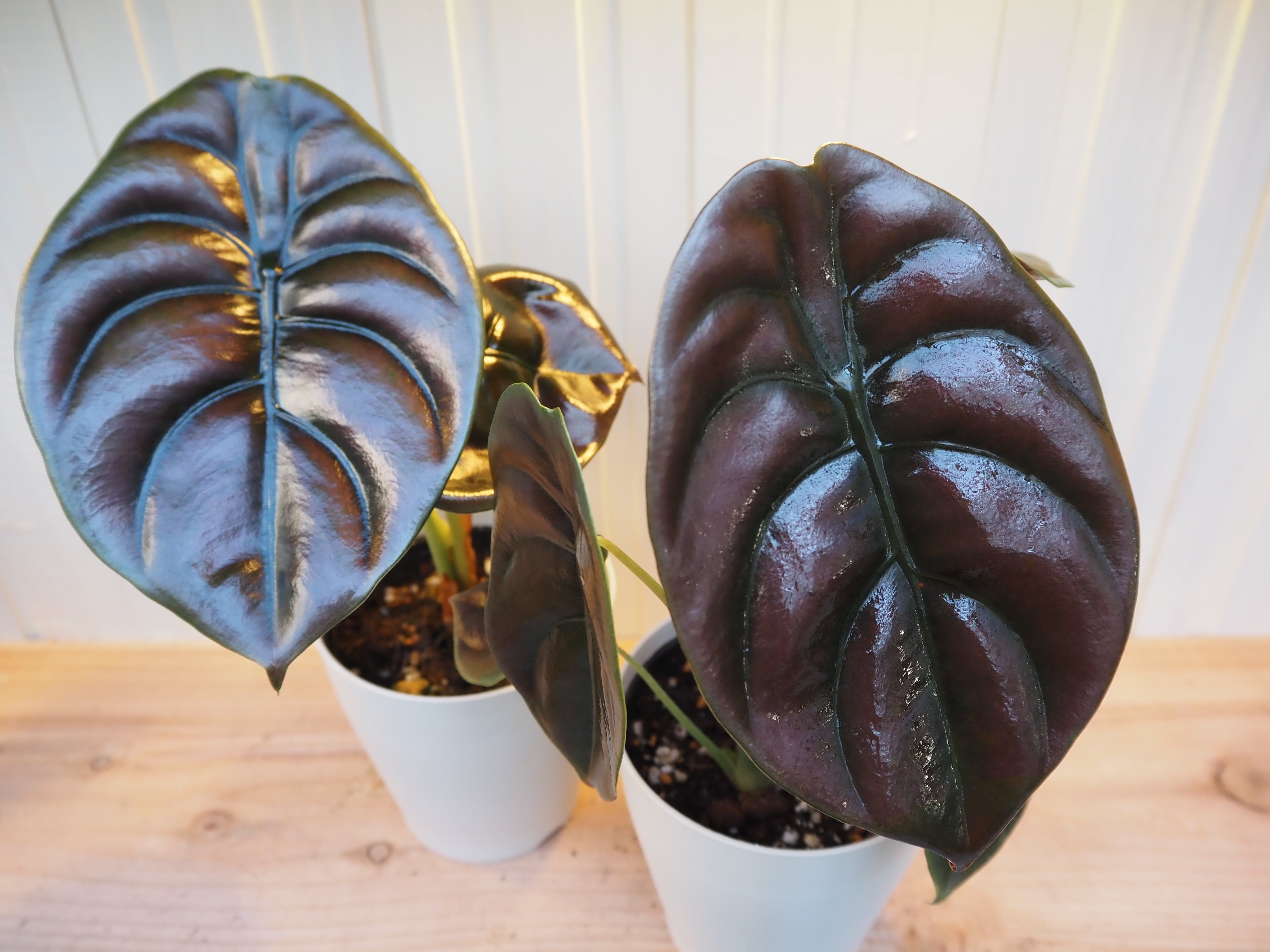 アロカシア クプレアです!少し赤みがかった金属のような光沢のある葉っぱがとてもおしゃれなアロカシアです。アロカシアの中でも流通量が少なく、とても希少で人気なアロカシアです。