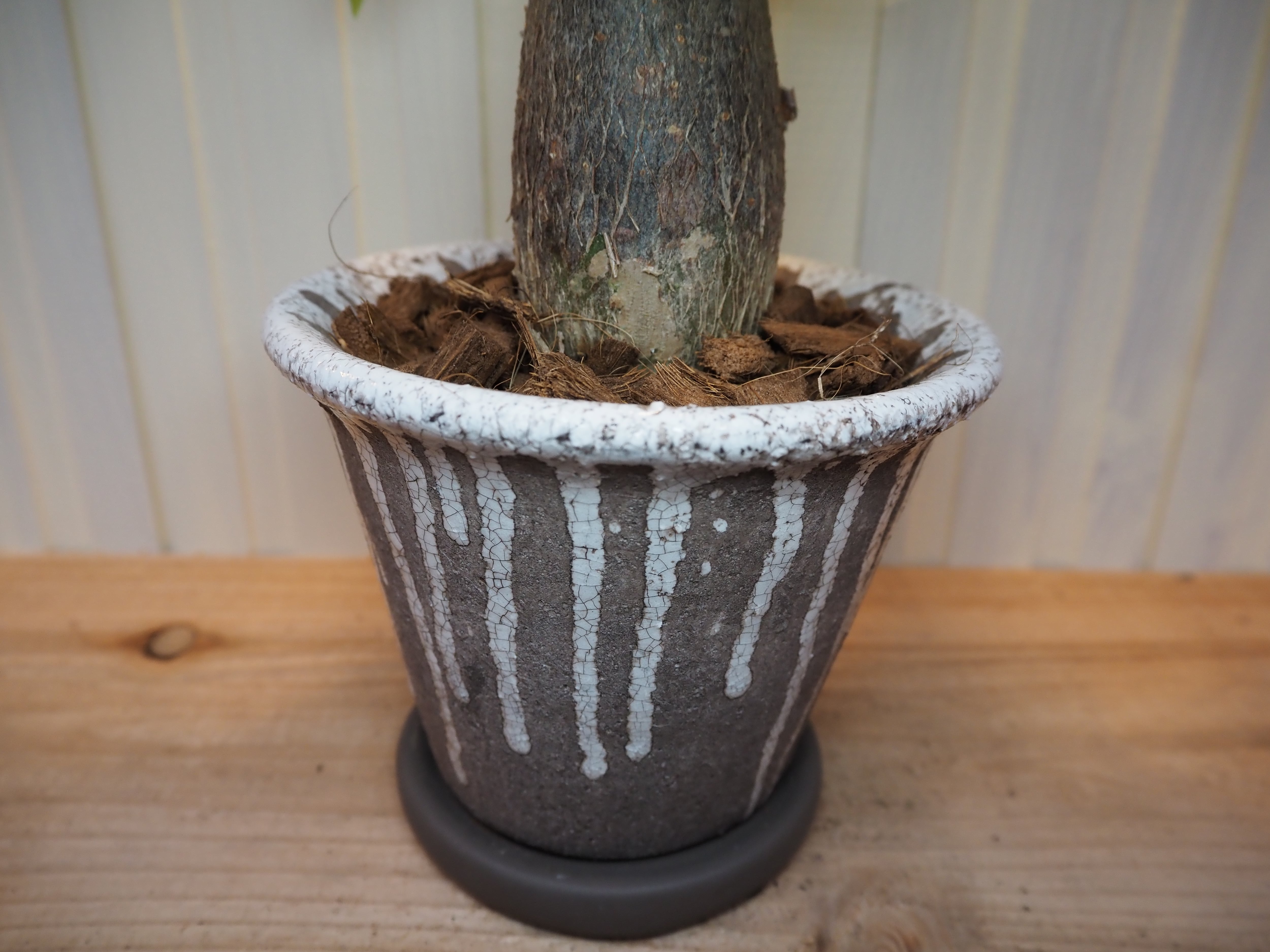 店主が独自にブレンドしている土を使用し、ウッドチップでマルチングもさせていただいているので、届いたらすぐにお気に入りの棚に飾れます。