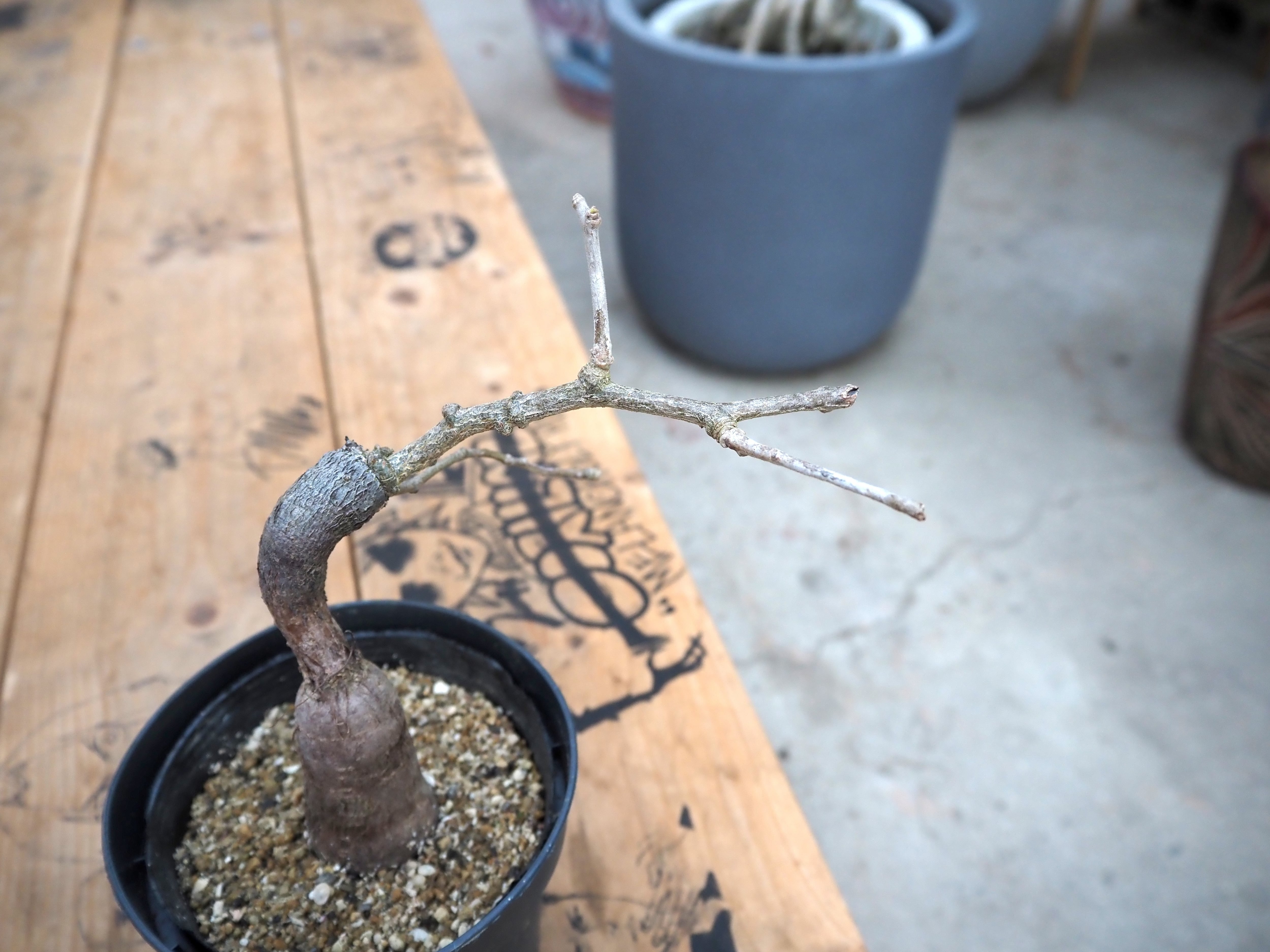 ヒファエノイデスはパキプスに比べ流通量が圧倒的に少なく、パワータンクからの「根伏せ」に挑戦できる機会は滅多にありません。この小さな塊根には、厳しい環境を生き抜くためのエネルギーが凝縮されており、ここから芽吹く姿は、実生株とはまた違った力強さと愛着を感じさせてくれます。