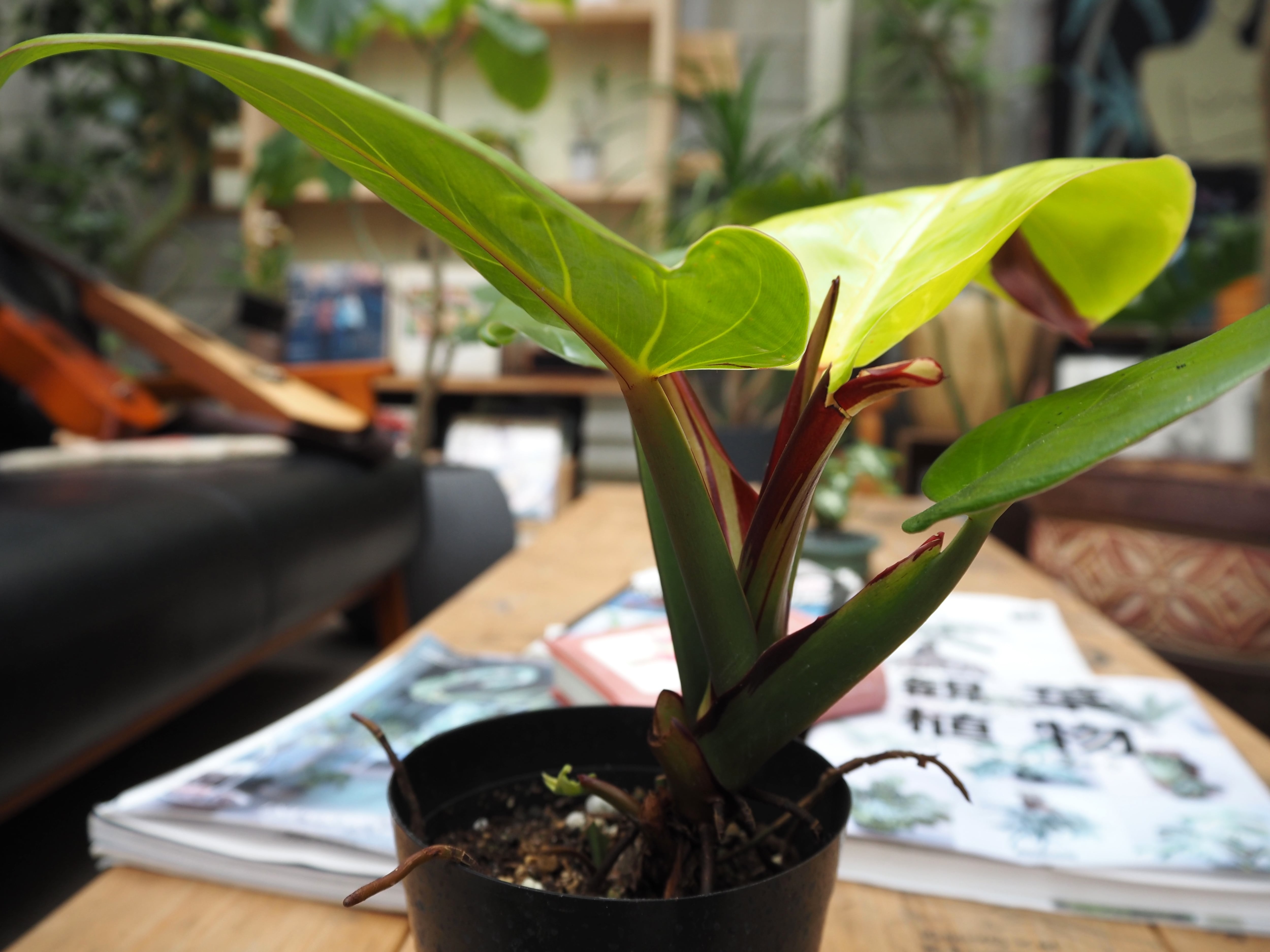 深いグリーンに、鮮やかなイエローの斑がフレーム(炎)のように入り混じる、フィロデンドロン屈指の希少種です。新芽が展開するたびに現れるドラマチックな配色は、まさに「生きた芸術品」と呼ぶにふさわしい輝きを放ちます。